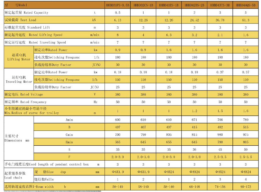 電動小車式環鏈電動葫蘆HHBD型0.5T-5T